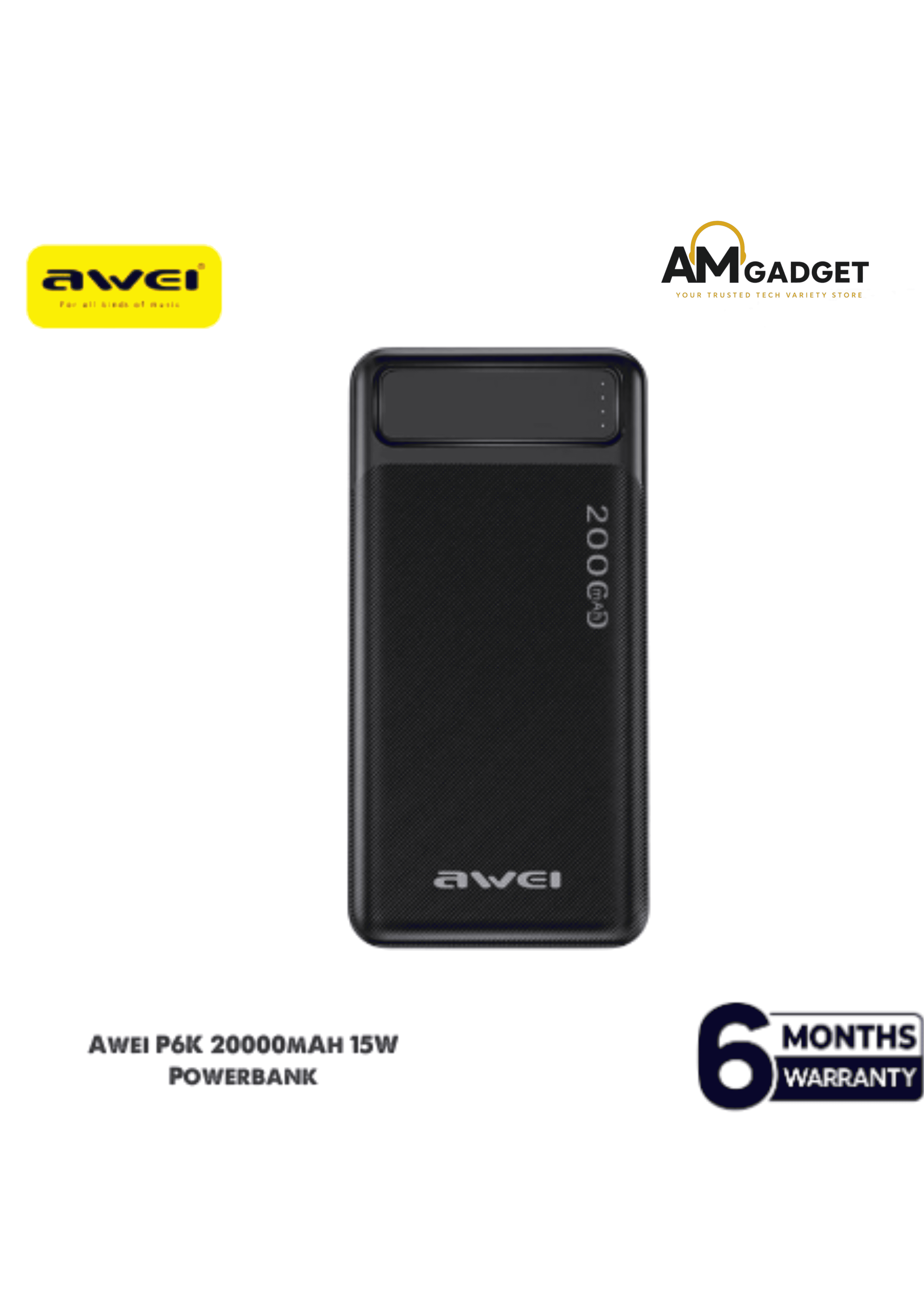 The price of Awei P6K Powerful Power Bank - 20000mAh in Bangladesh is only 1200 taka. Get this at an affordable price only from AM Gadgets.