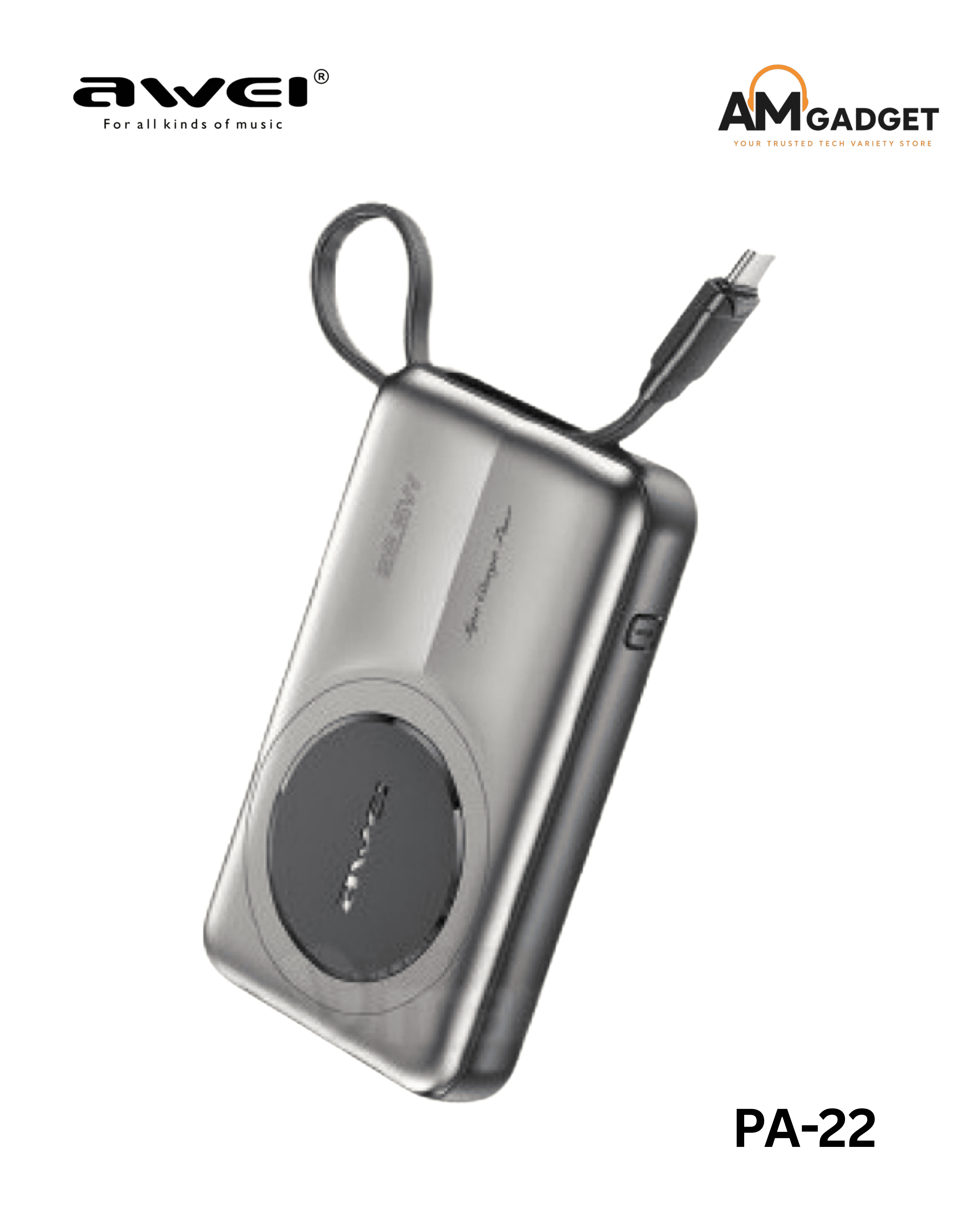 ✔ 100% Authentic Product – We only sell authentic Awei PA22 10000mAh 22.5W Wireless Built-in Type Cable to ensure quality and reliability.